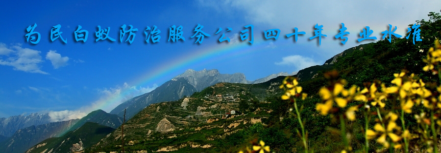 •  自信源于實力,品質(zhì)造就品牌。當陽市為民白蟻防治有限公司將一如既往利用精湛技術(shù)的優(yōu)勢,依托各界成功客戶的強大支持,以“為民除害、誠信高效、服務(wù)一流”為企業(yè)宗旨,積極吸取國內(nèi)外的先進技術(shù)和管理,全力以赴為人民的安居樂業(yè)做貢獻,以自信驕傲的姿態(tài),成為湖北地區(qū)白蟻防治的一朵奇葩!